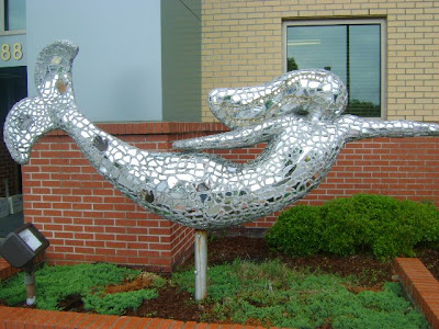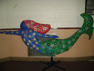 Chris Alexander outdid herself... again! This cutie is in the front window of the Kingston School. Her top is a beautifully painted horizon... her tail, decorated by the children who attend there.